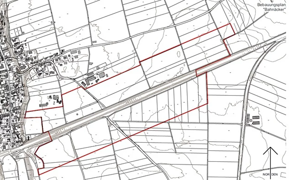 Der Geltungsbereich des Bebauungsplanes „Bahnäcker“ ist im beigefügten Lageplan, der Bestandteil der Bekanntmachung ist, mit roter Umrandung dargestellt.